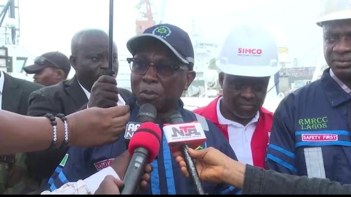 The Director General of the Nigerian Maritime Administration and Safety Agency (NIMASA), Dr. Dayo Mobereola, on Thursday paid a working visit to Snake Island, Lagos, where he inspected ongoing scheduled maintenance on the DB Lagos, one of the special mission vessels under the Deep Blue Project.